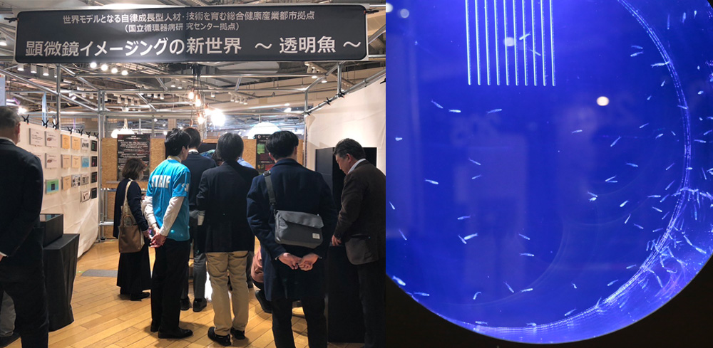 本拠点では「顕微鏡イメージングの新世界~透明魚~」と題して、健都イメージングサポート拠点と国循心臓再生制御部で扱っている透明魚の展示を行いました。