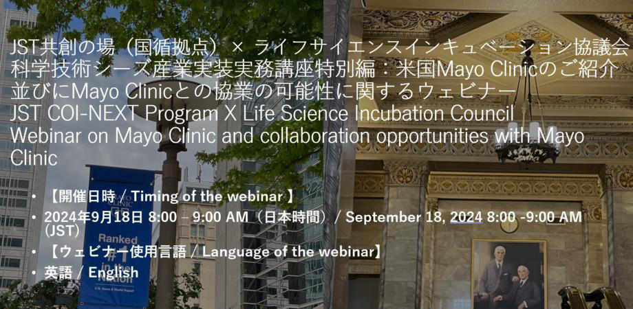 This time, we invited speakers representing Mayo Clinic, the world’s largest non-profit, comprehensive medical group in the United States, to speak about collaboration between the hospital and Japanese companies, and support for Japanese startups expanding into the US.In addition to clinical work, Mayo Clinic is engaged in a variety of research programs, translational research, and building an ecosystem for medical startups.